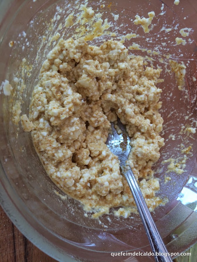 Preparamos la salsa que llevará, en un bol pequeño colocamos el queso fresco.