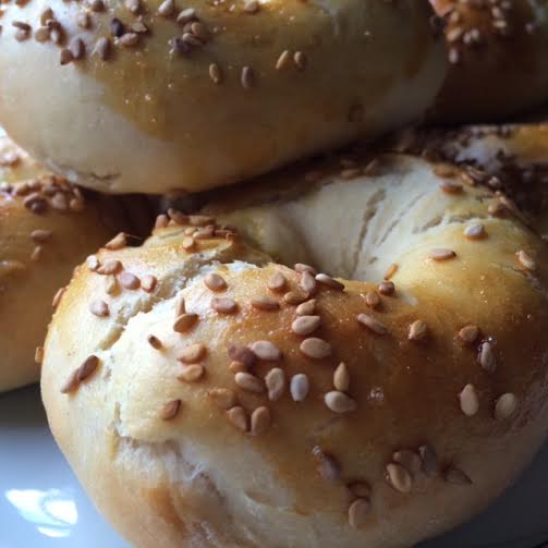 10) Cuando los bagels hayan reposado, pintar con huevo batido, espolvorear con semillas.