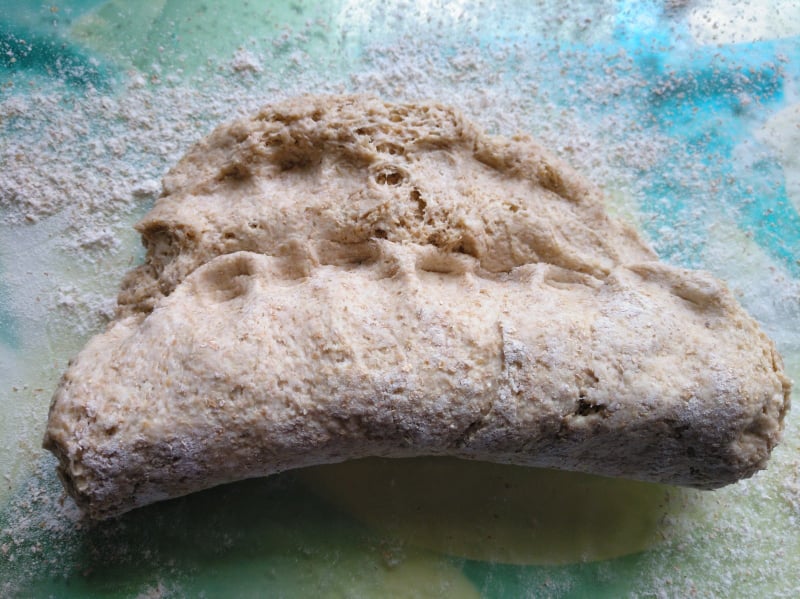 A continuación, los hacemos girar para formar un rulo del tamaño de la barra de pan.