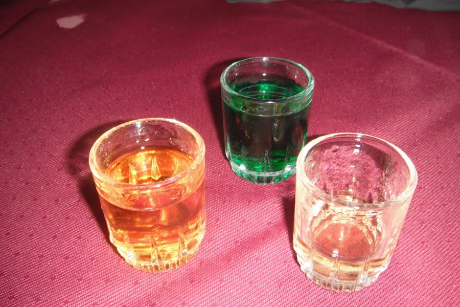 Curacao: licor de cortezas de naranjas amargas de la isla de Curacao. Hay de color