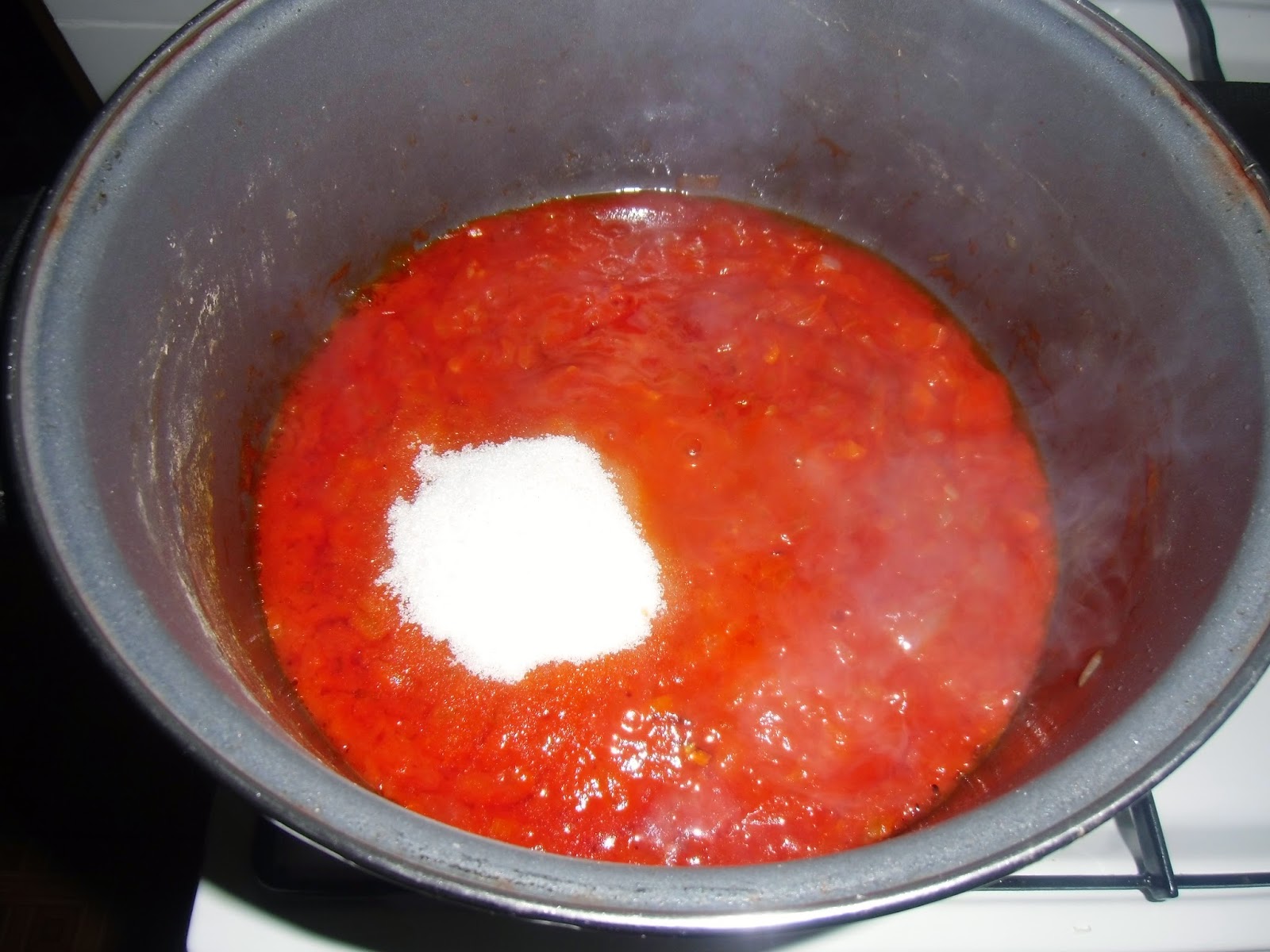 Incorporamos 4 cucharadas de vinagre, 3 cucharadas colmadas de azúcar y seguimos removiendo