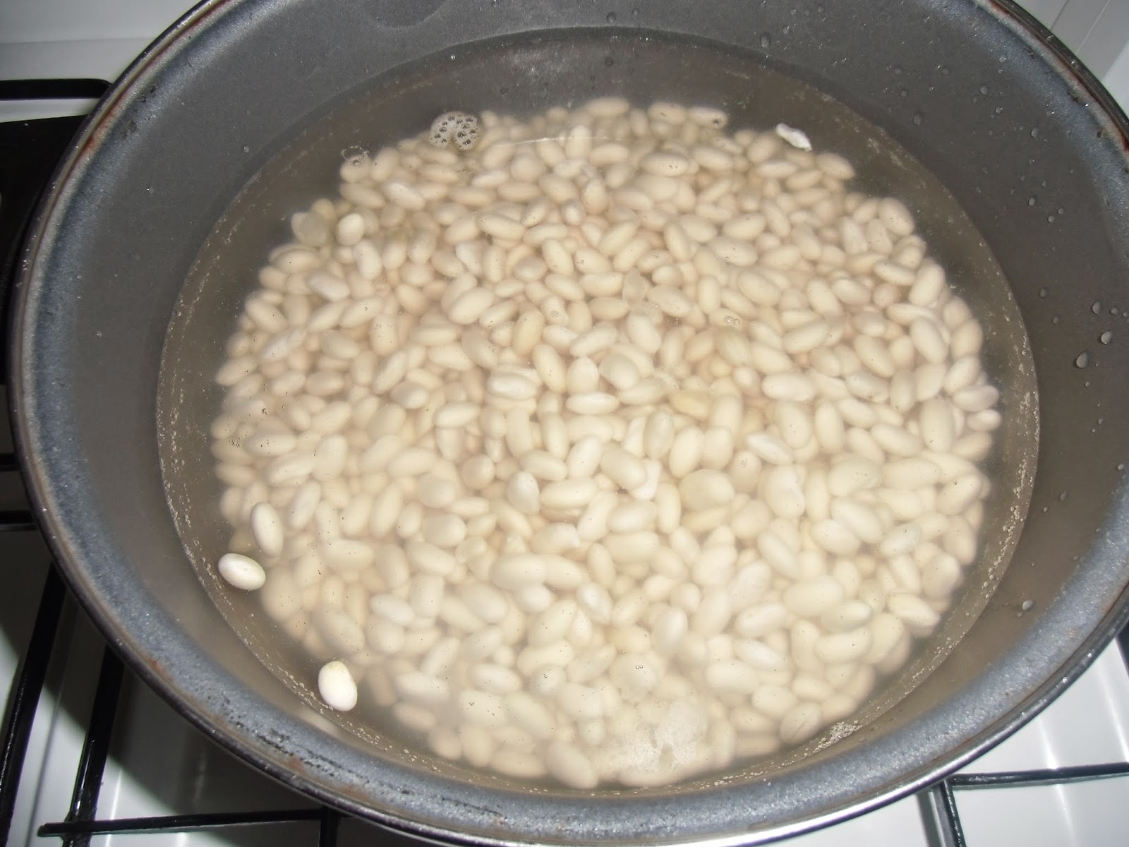 Cuando esté en ebullición bajamos el fuego y agregamos las alubias