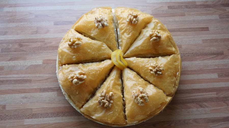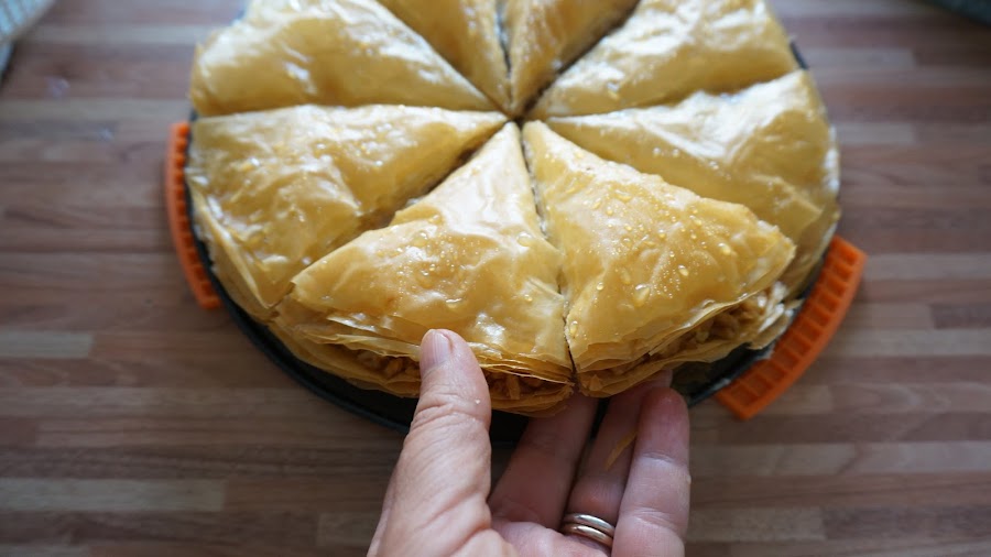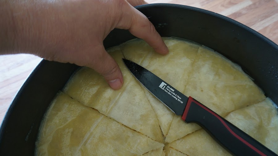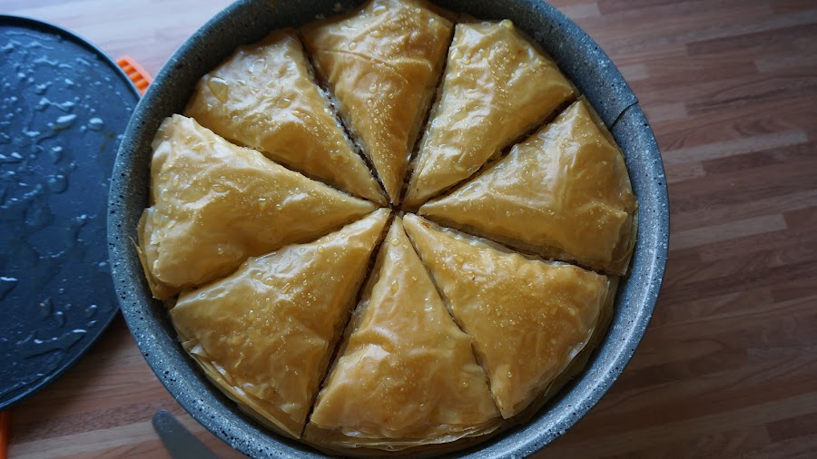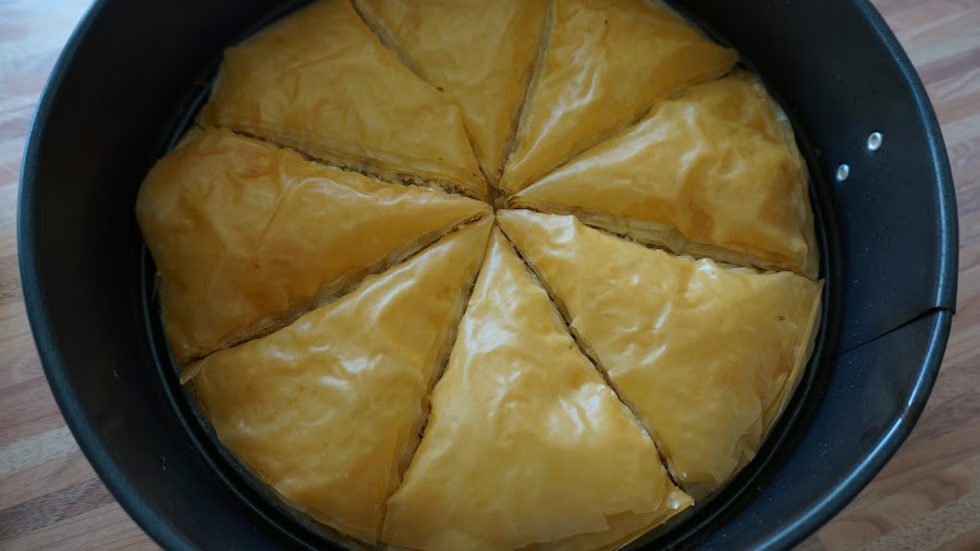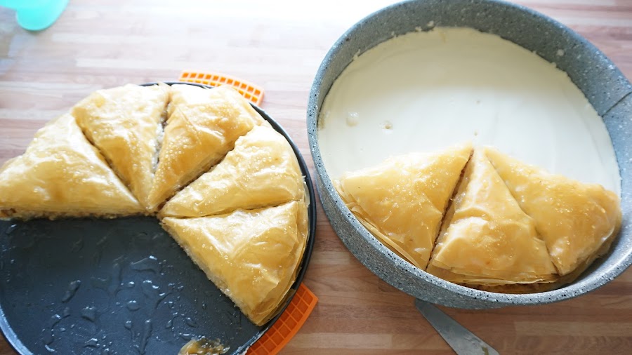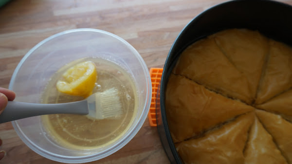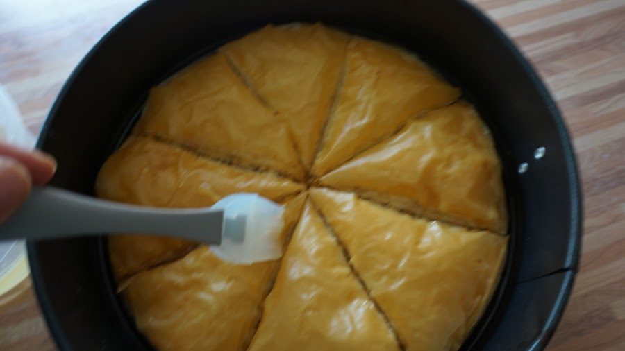 A mi me pasó que el baklava, se me quedó adherido bastante al molde, y costaba despegarlo. Lo que hice es pasarlo por la hornalla de la cocina, para que se afloje la mantequilla de abajo, y poder sacarlo bien. Sólo unos segundos nada mas, sino con un soplete por debajo.