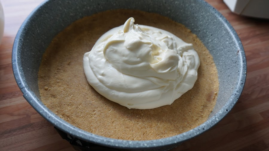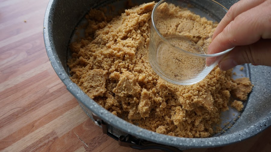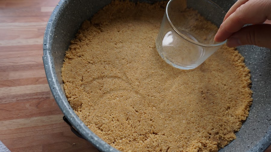 Lo hago todo dentro del molde del cheesecake, para asegurarme que queda parejo