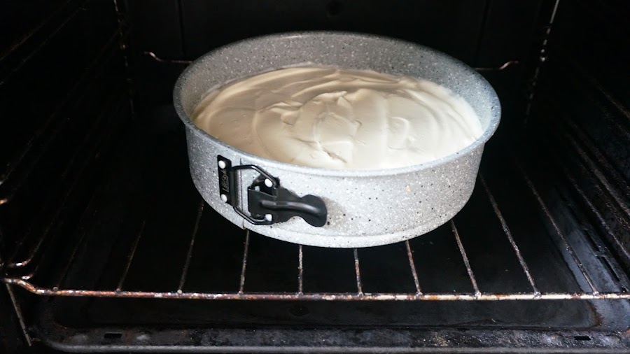 Pon la mezcla en un molde desarmable de 22 cm de diámetro, con el fondo forrado con papel de hornear. Puedes también colocar papel en el lateral, para que sea mas fácil de desmoldar.