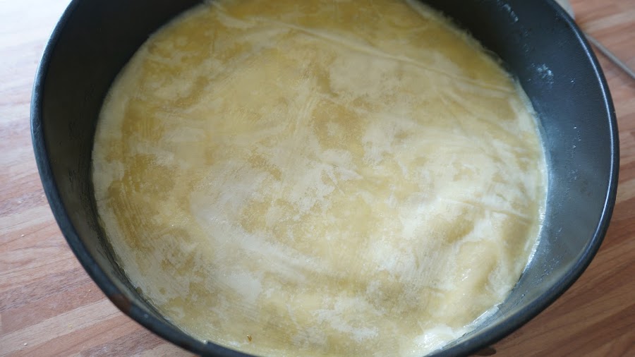 Unta con la mantequilla derretida, pero a temperatura ambiente, el fondo del molde