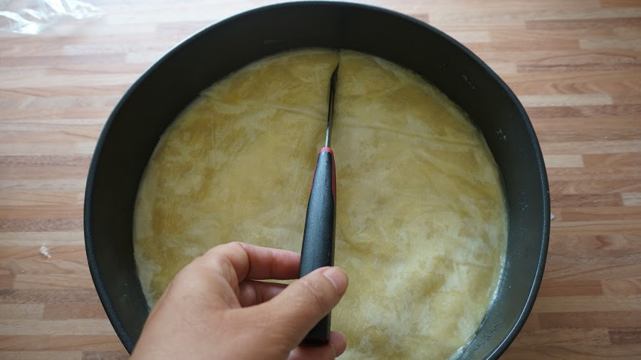 paso un cuchillito alrededor del cheesecake para despegar, si pusiste papel del horno alrededor, entonces no hace falta