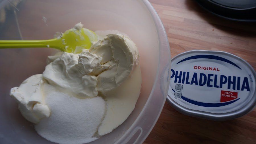Nota: * yo sustituí la crema ácida por 100 gr de yogur griego y 100 gr de nata (crema de leche) para montar