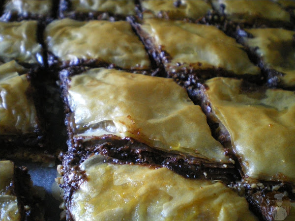 Tengo que decir, y ésto me lo suelen echar en cara en más de una ocasión, que existe alguna necesidad superior dentro de mí, que me impide hacer dos veces el mismo plato. Así que con esta receta me desquito en parte porque aunque son batlavas, no lo son en su versión mas tradicional, pero tampoco creo que le pongan reparo alguno llevando en su composición ingredientes tan deliciosos como el chocolate, la nutella o unas deliciosas almendras dispuestas en capas de pasta filo irresistiblementes crujientes. Estoy completamente seguro que los lectores más chocolateros, estarán encantados con este batlava.
