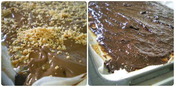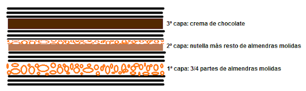 La última capa lleva la crema de chocolate y nutella.