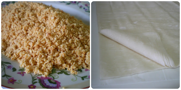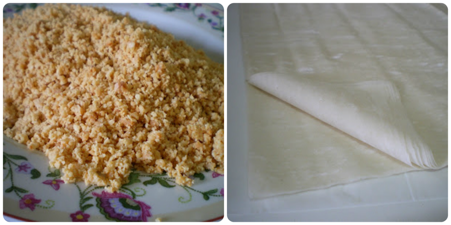 La elaboración de la pasta filo tradicional es muy difícil de hacer. Los turcos dicen que lleva cuarenta masas, y es verdad, ellos los hacen todo a mano, hacen la masa y la estiran hasta que casi ves a través de ella, es muy quebradiza y muy difícil de elaborar sin tener práctica alguna, allí prácticamente todas las familias los hacen para la "fiesta del dulce y a cada casa que visitas, te ofrecen su baklava casero.Yo no he querido entrar en menesteres laboriosos de los que estaba convencido iba a ser tanto una pérdida de tiempo como de alcanzar un cabreo mayúsculo y he optado por la vía fácil de comprar la masa filo ya elaborada que tan buen resultado da al hornearla. Es gratificante ver en los comercios, como han prosperado en tan poco tiempo y de manera casi generalizada, masas complejas de elaborar que antes estaban al alcance de pocos no solo por el número de comercios que las distribuían, sino también, por su alto coste económico.