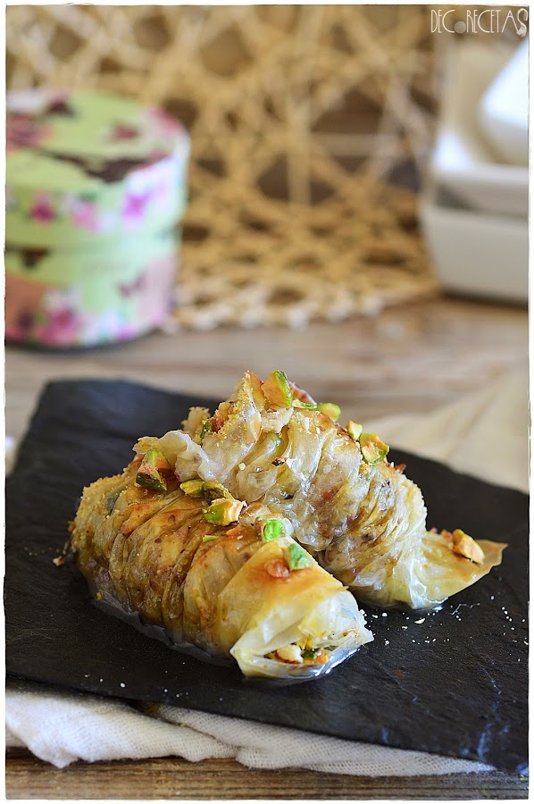 Mi segundo Baklava en el blog y a cada cual más rico!!! La verdad que lo que cambia de este es la presentación que es más original y llamativa que en el caso anterior cuya receta tenéis aquí.
