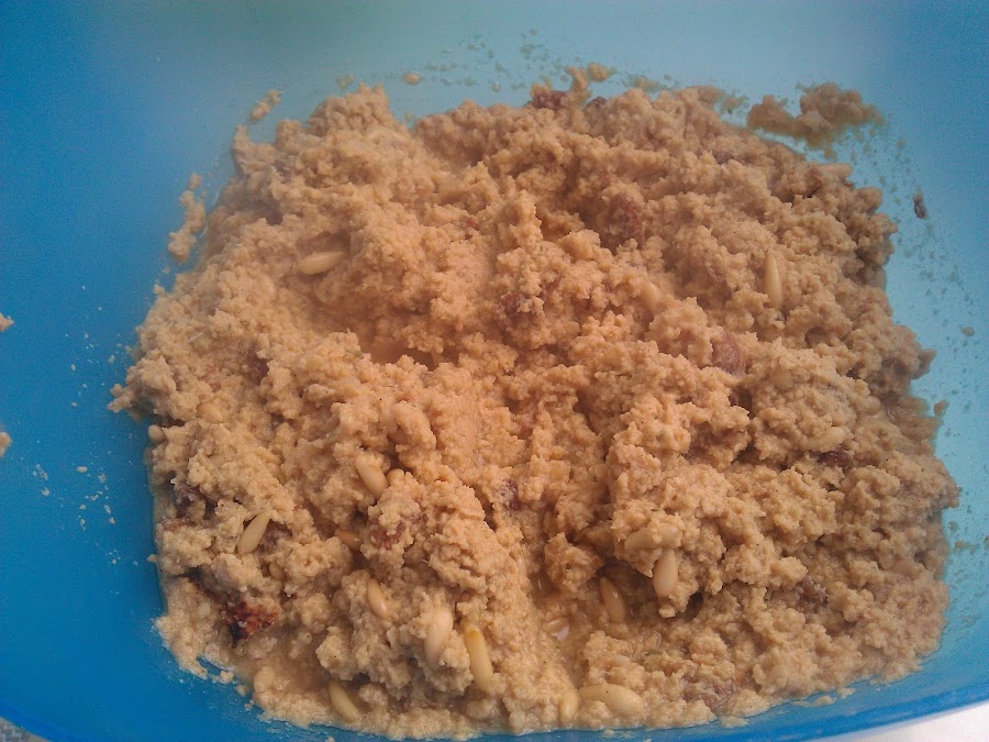 5. - Añadir los piñones, las pasas, el azúcar, la sal, el azafrán y los huevos batidos. Programar 3 minutos, temperatura 90º velocidad 2 y dejar enfriar mínimo 3 horas para que espese.