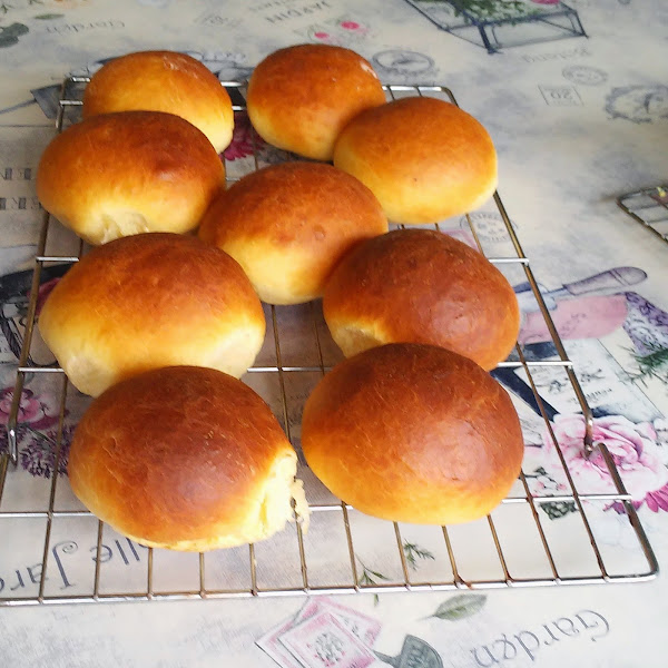 En primer lugar mezclamos nuestros ingredientes secos: Harina, sal, levadura y azúcar. Añadimos los huevos, nata (crema de leche) y mantequilla fundida y trabajamos la masa hasta que nos quede elástica y brillante ( en máquina 10 mintutos, a mano 15 al menos ). Tapamos y dejamos reposar hasta que duplique su volumen ( un par de horas).