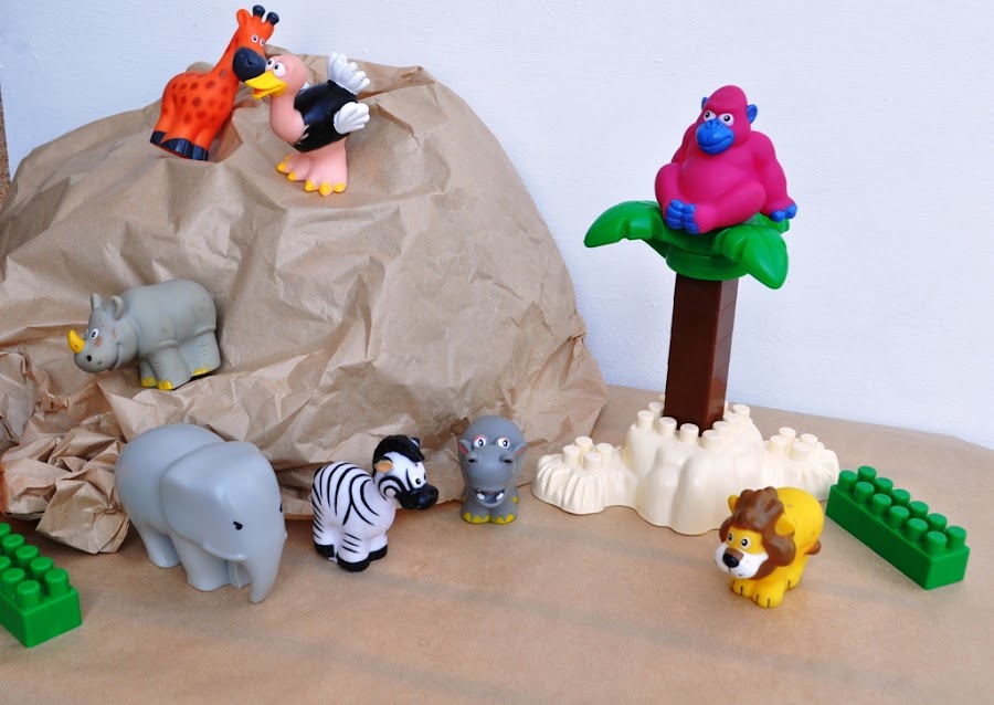 Aqui os enseño como montó mi niña el decorado para el cuento. No le falta detalle y desde luego que nos ambienta perfectamnete en el libro de la selva.