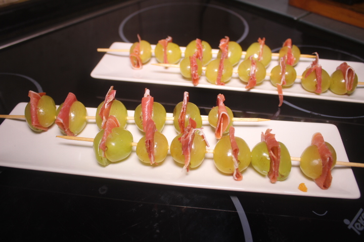 Si el melón con jamón esta rico ¿por qué, no van a estar ricas estas brochetas de uvas con jamón?