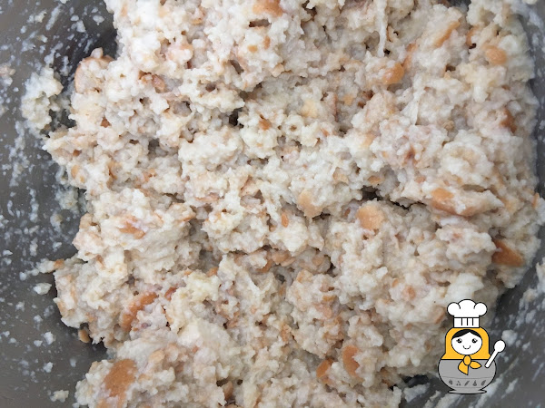 Ahora agregamos la manteca derretida, el azúcar, la sal y el comino y removemos bien todo. Por último, añadimos los huevos, removemos todo e incorporamos la harina. Removemos muy bien hasta que se mezclen bien todos los ingredientes. Por último, añadimos las nueces rebozadas en harina y removemos. Reservamos.