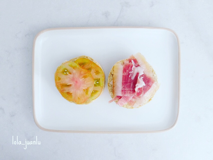 O podemos hacer unas tostas o montaditos con ellos. A nosotros nos gustan con un poco de aove, rodajas de tomate y lonchas de jamón serrano.