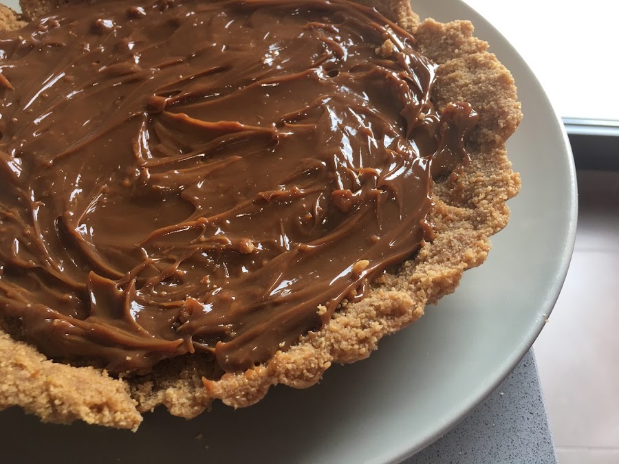 2. Cuando la tartaleta haya enfriado suficiente, cubrimos la base con el dulce de leche.