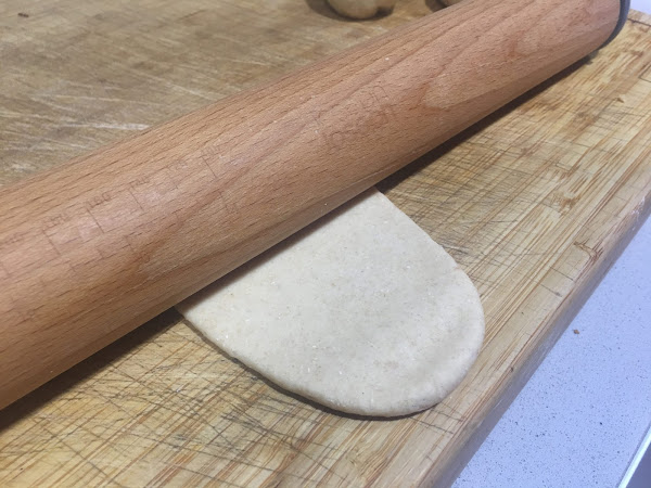 5. Con ayuda de un rodillo estiramos las bolas hasta conseguir un grosor de unos 4mm y una forma alargada similar a una lengua. Colocamos un trocito de papel vegetal en medio y doblamos por la mitad. El papel servirá para que al hacerlo al vapor no se peque, quede abierto y se pueda rellenar. Dejamos reposar 20 minutos cubiertos con un paño de cocina limpio.
