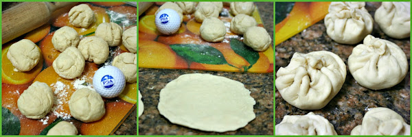 Lo complicado viene ahora para cerrarla:subimos la masa formando un saquito y vamos cerrando pellizcando los bordes a la vez que giramos la bola.