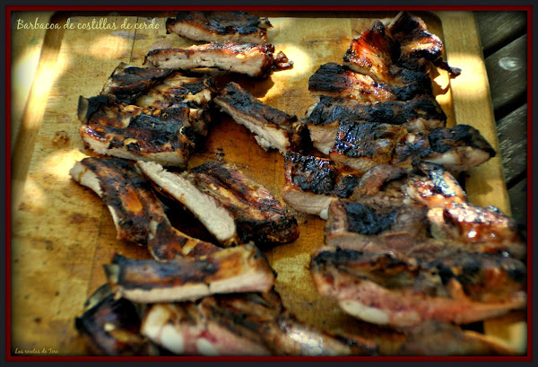 Prende la parrillera y cuando los carbones ya estén en brasas pones las patatas y los pimientos dentro de las brasas. Pon a asar las costillas, unos 11 minutos por lado, cuando veas que están doradas y soltando sangre, ya están listas.