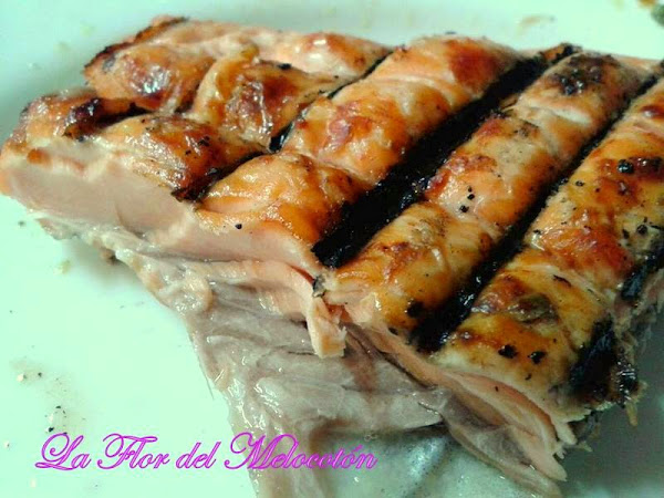 El salmón se pega un poco en la parrilla, pero queda delicioso.