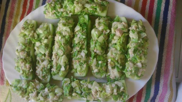 Rellenamos con esto los pepinos y dejamos en la nevera mínimo un par de horas.