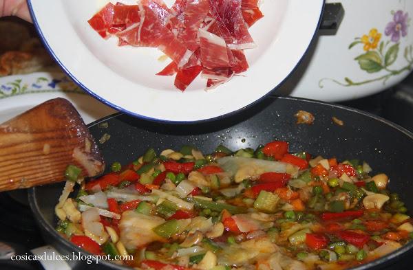 Finalmente agregamos el jamón ibérico de bellota y salpimentamos.