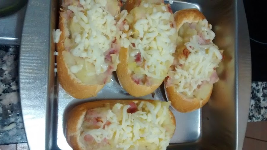 Precalentamos el horno a 180º y metemos las pulgas a los 10 minutos las sacamos del horno y rociamos queso y las metemos al horno hasta que se gratine.