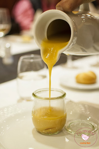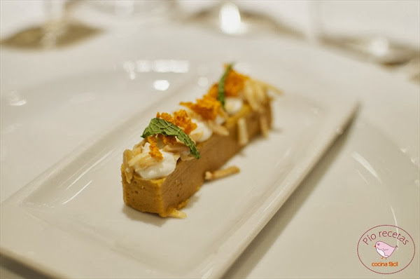 Continuamos con el Turrón de foie,suave y aromático,me gustó el juego de sabores y el toque ácido del yogur,el crujiente de la almendra.
