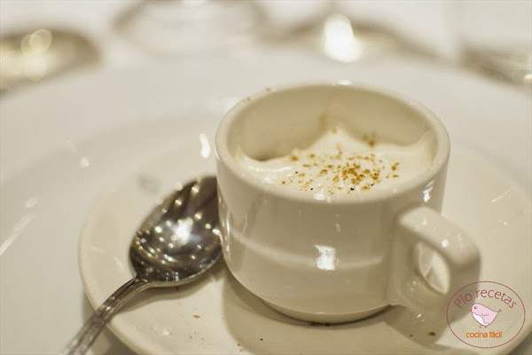 Capuchino de Idiazábal,quien iba a decir que nos ibamos a encontrar con con trocitos de coliflor "aldente" en el fondo de este estupendo capuchino.Quedaba genial la combinación del queso con la coliflor y la panceta.
