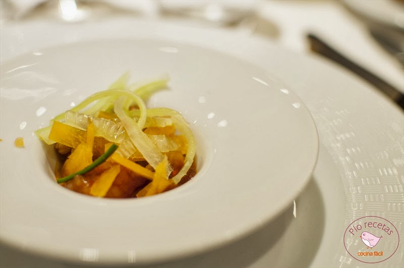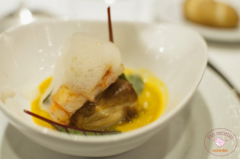 Panceta ibérica con cigala y aire de limón,me sorprendió la textura de la panceta y me gustó la pareja que hacía con la cigala