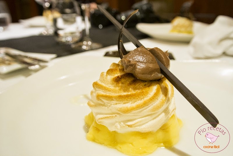 El postre consistió en Tortada Murciana con merengue,crema y bizcocho y paparajote todo de la mano de Andres Mármol de la Confitería La Gloria