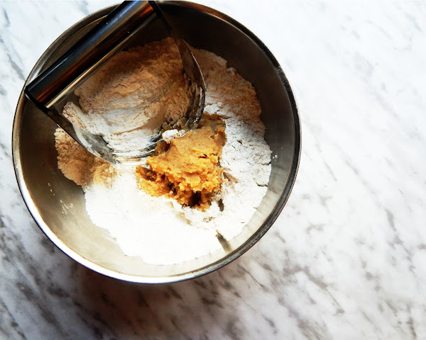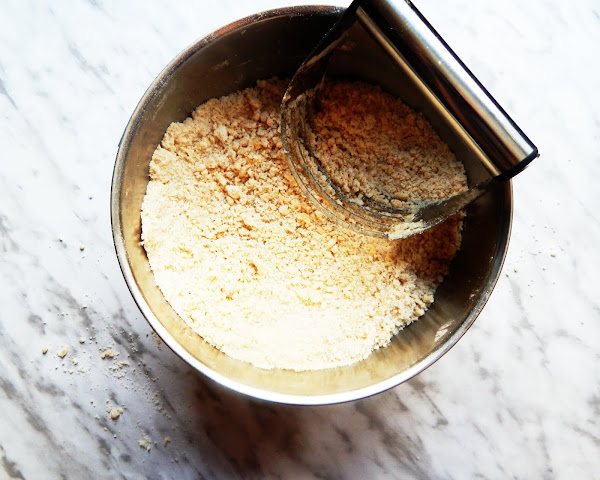 En un bowl grande mezclamos nuestra harina, azúcar, polvo para hornear, sal, canela y nuez moscada. agregamos la mantequilla avellanada e integramos un poco con el mezclador de masa o nuestras manos (si es de esta última manera, procura no aportar demasiado calor a la masa). Agregamos el huevo y seguimos integrando hasta que nuestra mezcla esté arenosa.