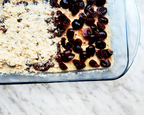 Este año, desde que empezó la temporada de las cerezas esperaba con ansias el día que compraría mis cerezas a un súper precio. Pues tardo un poco, ya hasta me estaba desanimando, pensé que no llegaría, pero llegó. Por supuesto que aproveche y compré unas cuantas cajitas, (esta vez tuvieron presentación de cajita) Hice un clafoutis de cerezas, les debo la receta pero pueden ver mi Clafoutis de Zarzamoras e intercambiar las zarzamoras por cerezas, comimos la fruta solita y por supuesto hice estas "Barras de Cerezas con Crumble".