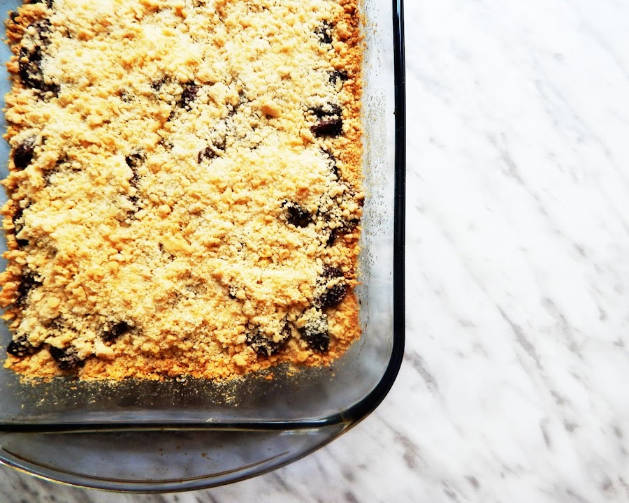 Ya saben, ¡yo adoro el crumble!, y que a todo le quiero poner crumble. Pero es la primera vez utilizo la masa del crumble de dos diferentes maneras. Es crocante y crocante por todos lados, pero tiene diferentes crocantes, y al mismo tiempo se deshace en la boca. La textura de abajo es como una galleta. Y al tener unas deliciosas cerezas entre esas dos capas, te hace sentir que tu boca está de fiesta.