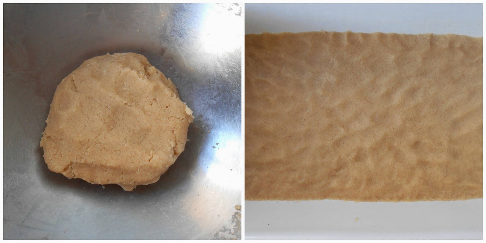 Unir bien hasta obtener una masa suave que no se pega a los dedos. Colocar la masa en el molde, presionando con los dedos hasta cubrir toda la base.