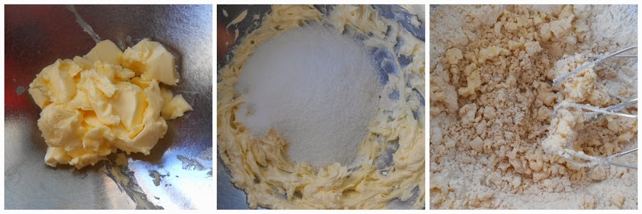 En un bol batir la mantequilla hasta obtener una crema. Añadir el azúcar incorporando bien y por último agregar la harina tamizada con la canela.