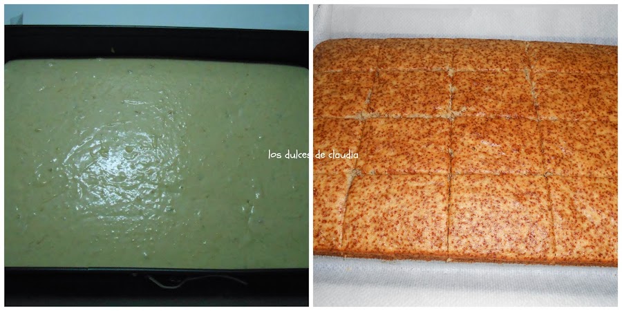 Enmantecar y enharinar un molde rectangular poner la mezcla y hornear 50 minutos.