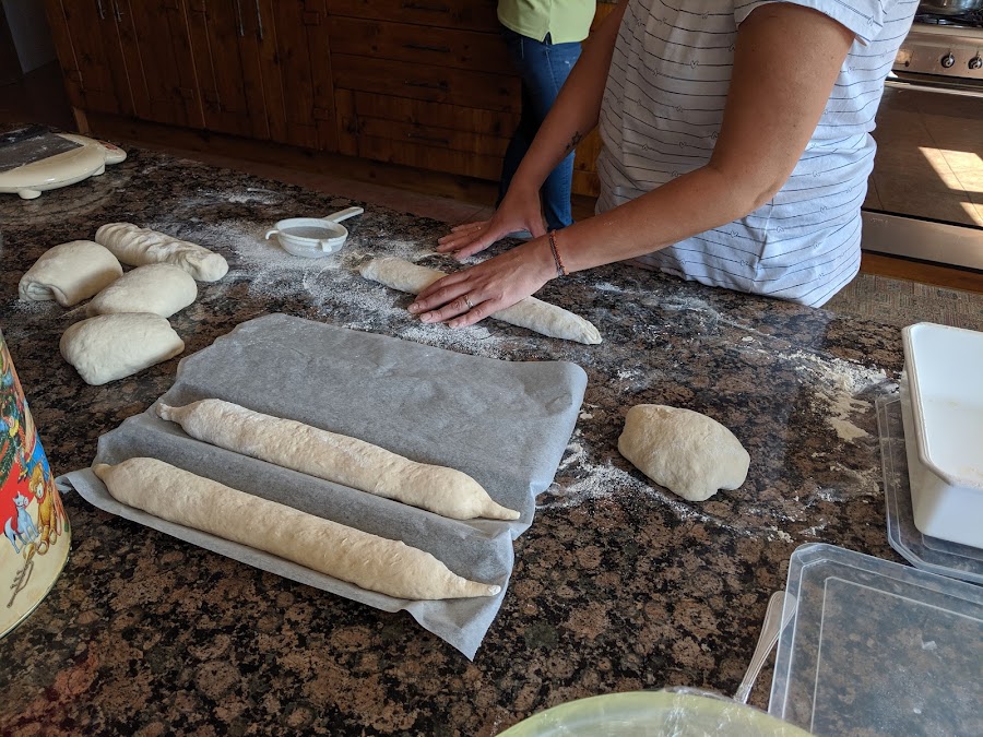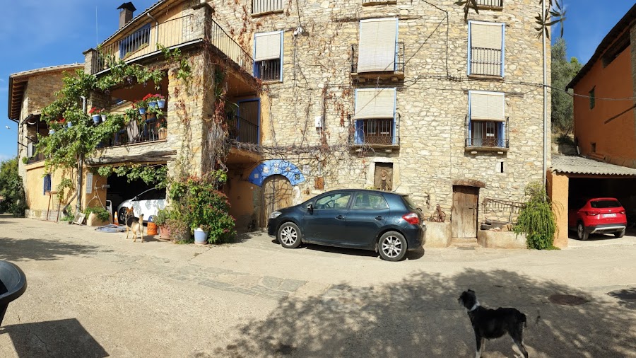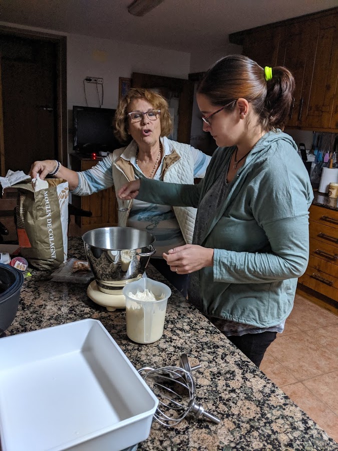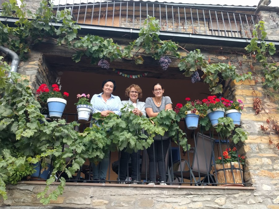 Nos situamos en la comunidad de Aragón y en la provincia de Huesca. Muy cerquita de la cola del embalse de El Grado, en el prepirineo. Un lugar tranquilo, alejado del bullicio, con cabras, cerdos, gallinas y una gente maravillosa. Casa Bielsa la regentan María Jesús y José Manuel que nos han hecho sentir en casa. María Jesús nos ha cedido su cocina, con su horno industrial, y nos hemos pasado el fin de semana haciendo pan. Los maridos han caminado, José Manuel se encargó de ellos jajajaja y nosotras, con unas vistas espectaculares, hemos disfrutado de masas, olor a pan, charlas interminables... Increíble