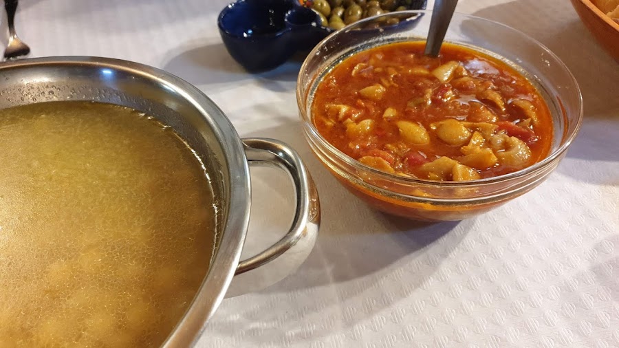 Detalle de la comida del sábado, callos de jamón con garbanzos