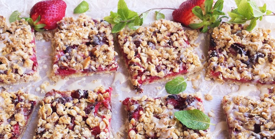 http://www.wellplated.com/strawberry-oatmeal-bars/