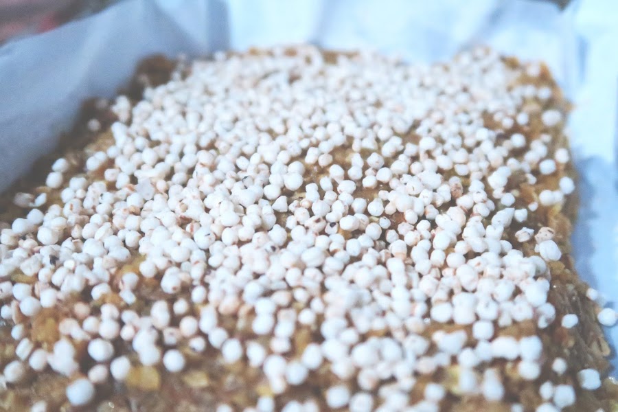 Llevar al refrigerador por toda la noche, decorar (yo usé quinoa inflada, pero también puedes añadir chocolate o coco rallado, o lo que prefieras!) cortar del tamaño que prefieras y disfrutar!