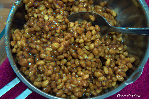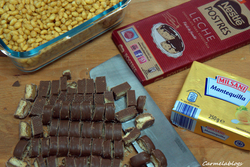 BARRITAS DE CARAMELO, CHOCOLATE Y ARROZ INFLADO