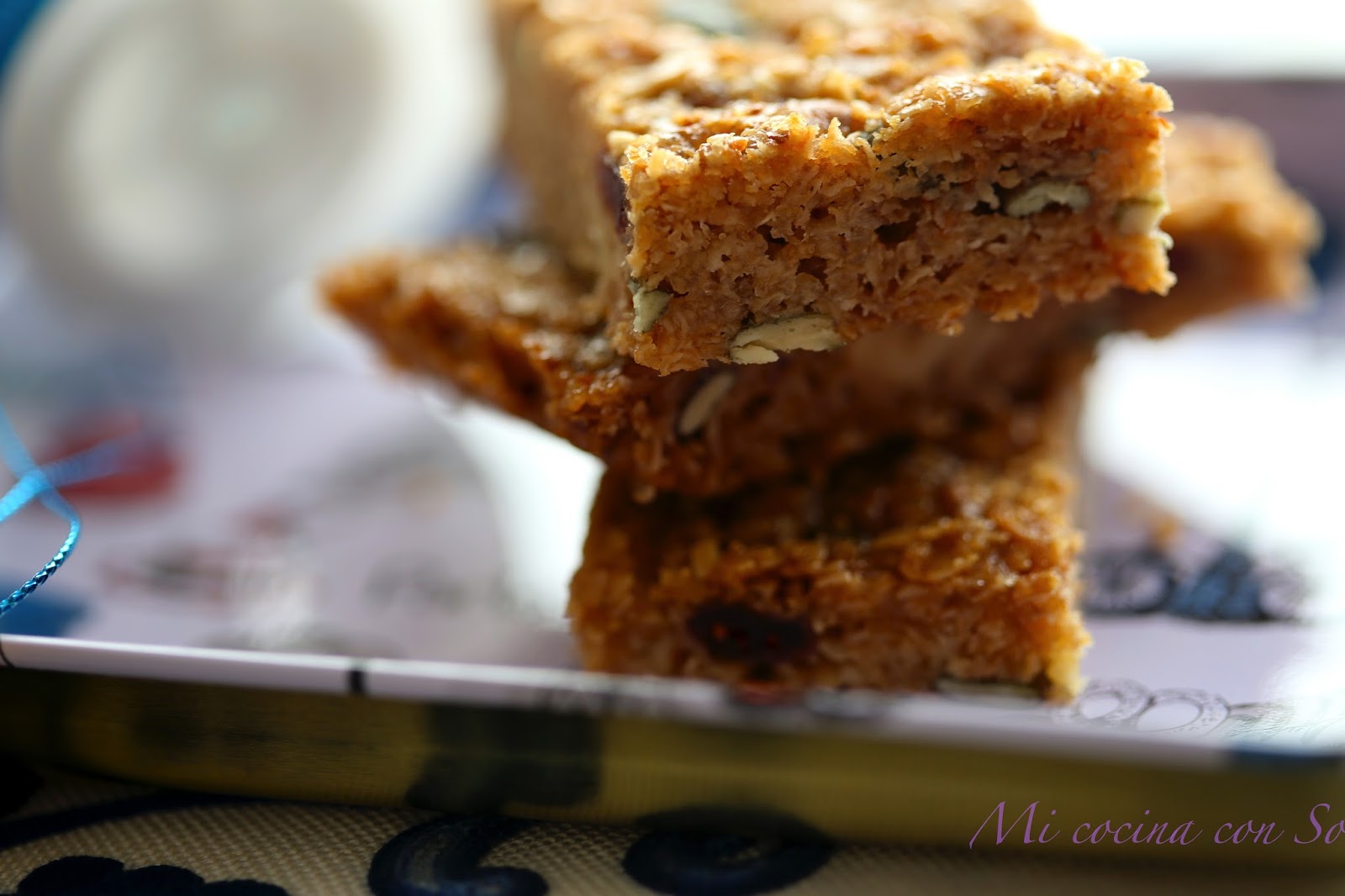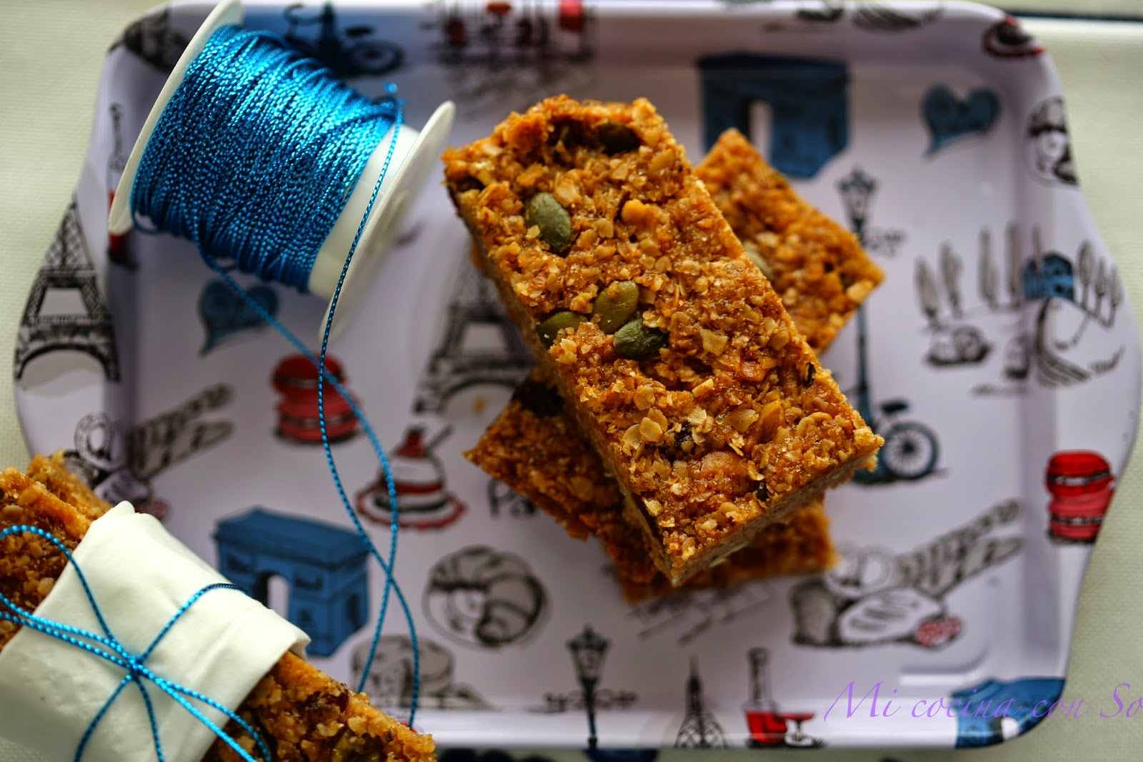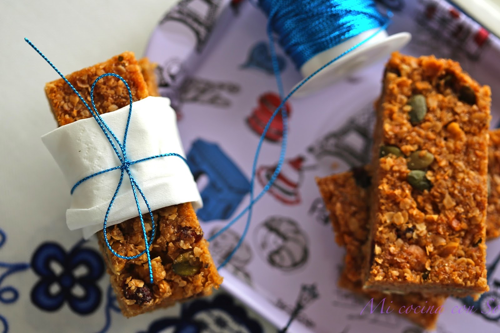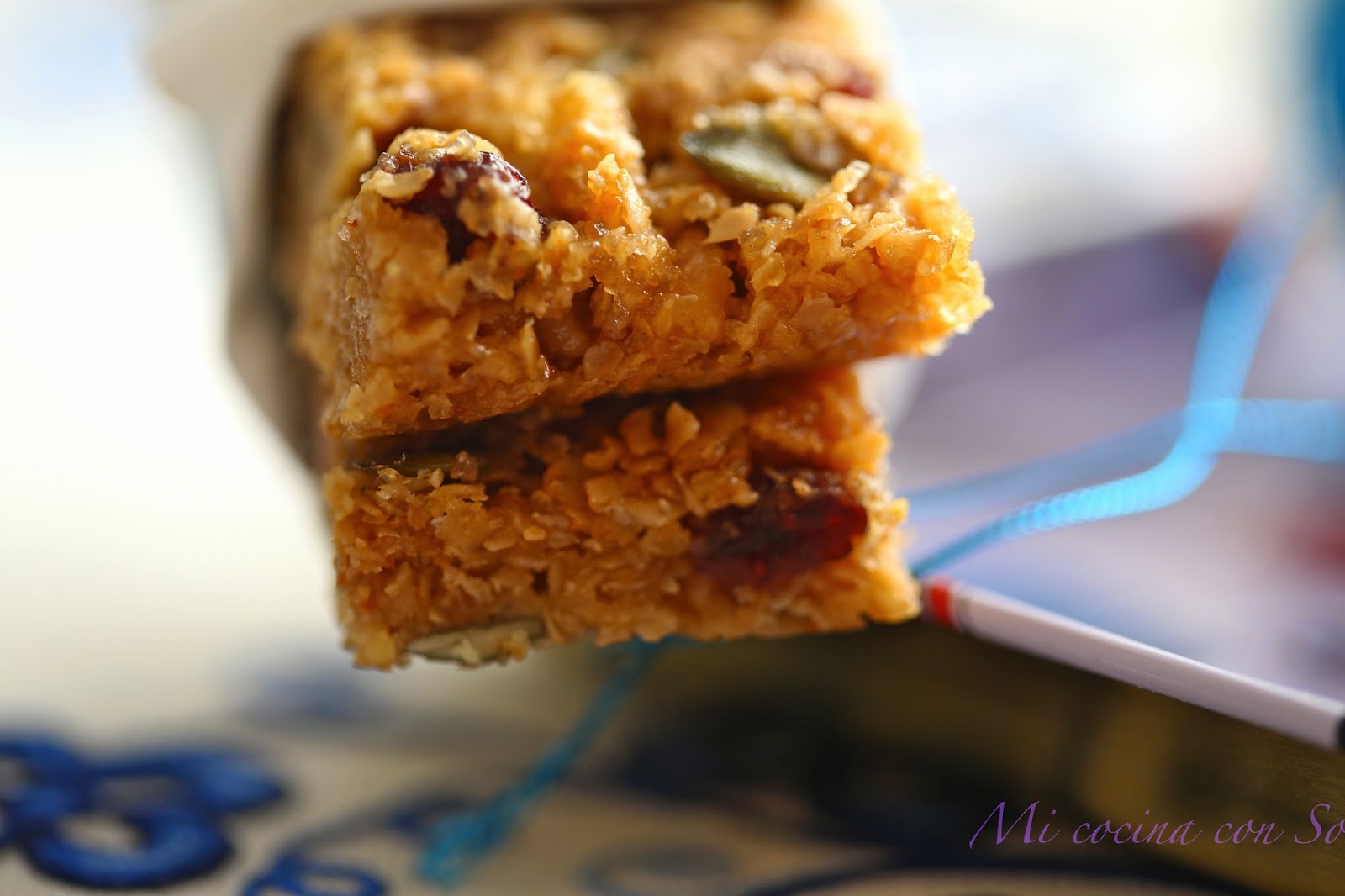 Estas barritas las he sacado del libro de Lorraine Pascale. Son deliciosas y muy fáciles de preparar, seguro que haré más versiones de ellas porque han gustado muchísimo y además admiten múltiples variaciones. Será cuestión de experimentar.....INGREDIENTES PARA 16 BARRITAS: