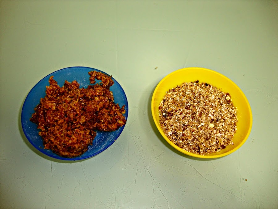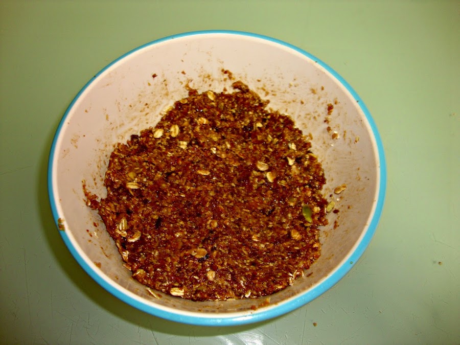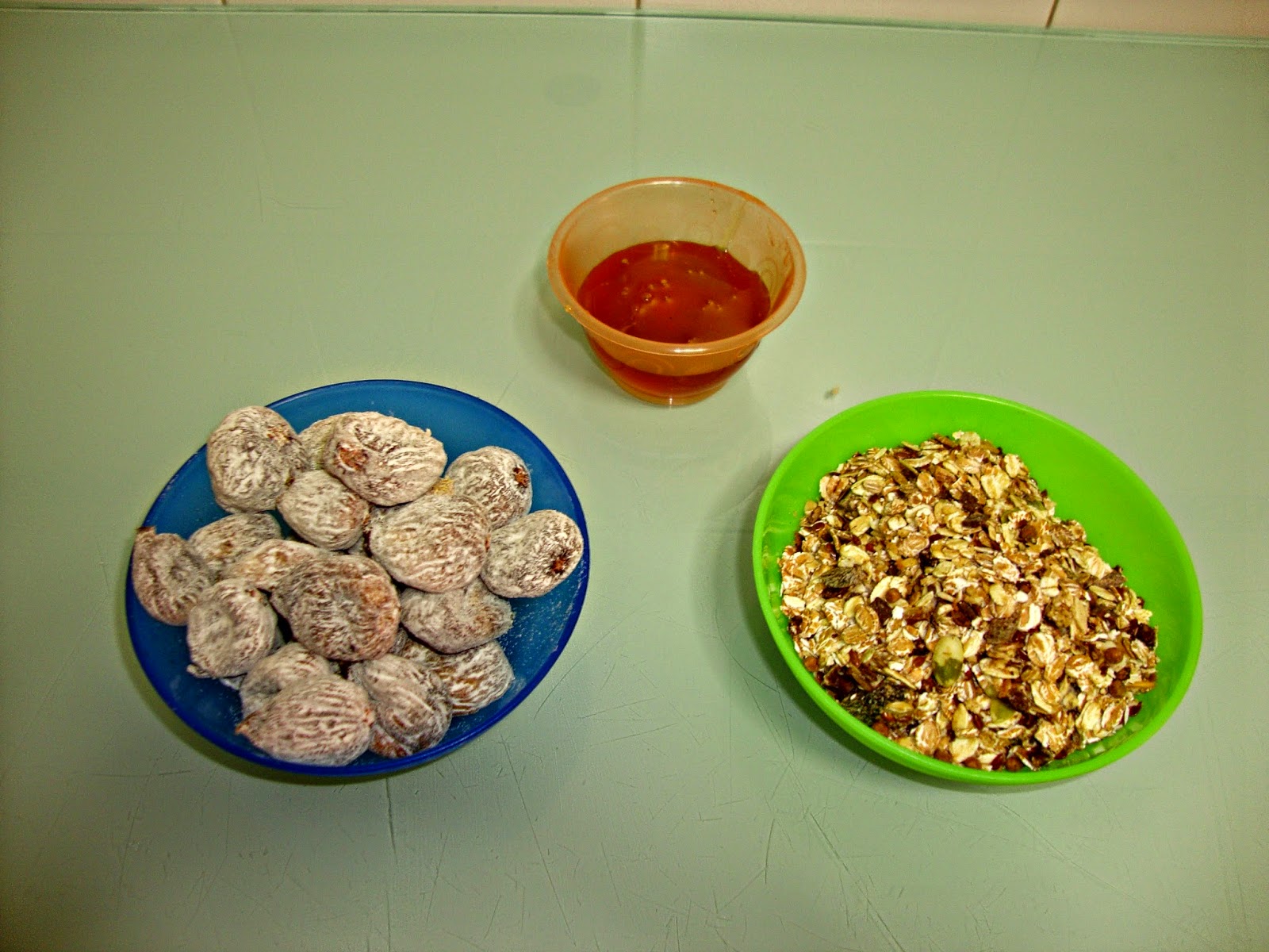 Trituramos los higos hasta que formen una masa y también trituramos los muesli o cereales (yo he dejado unos pocos sin triturar porque me gusta mas esa textura).