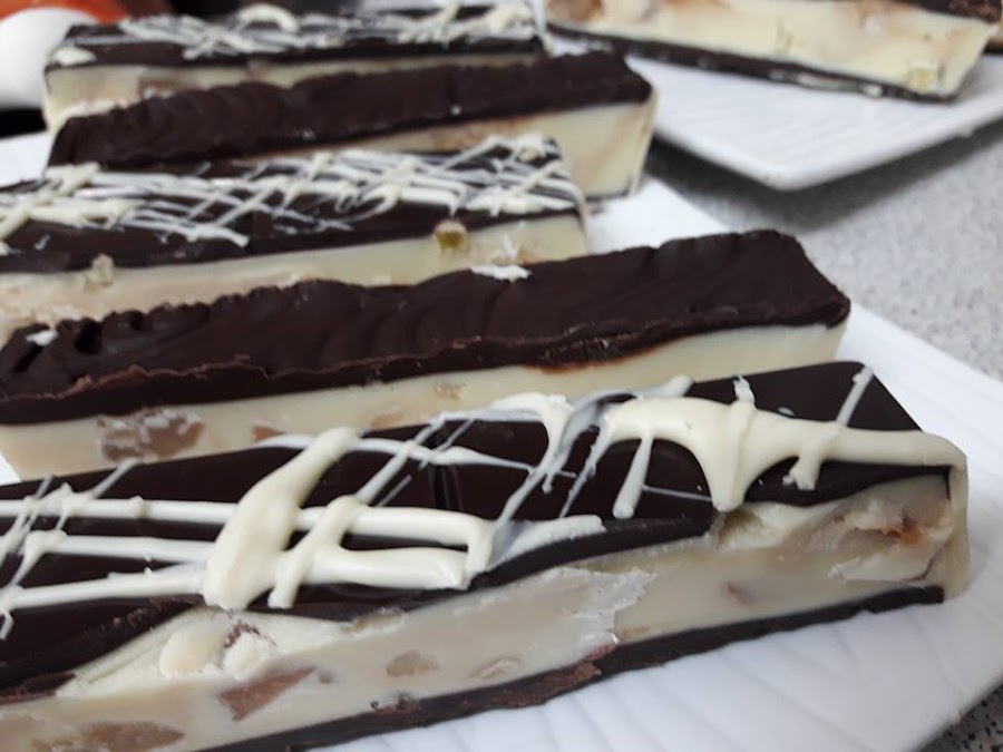 Para las barritas Bariloche he utilizado los chocolates negro y blanco.