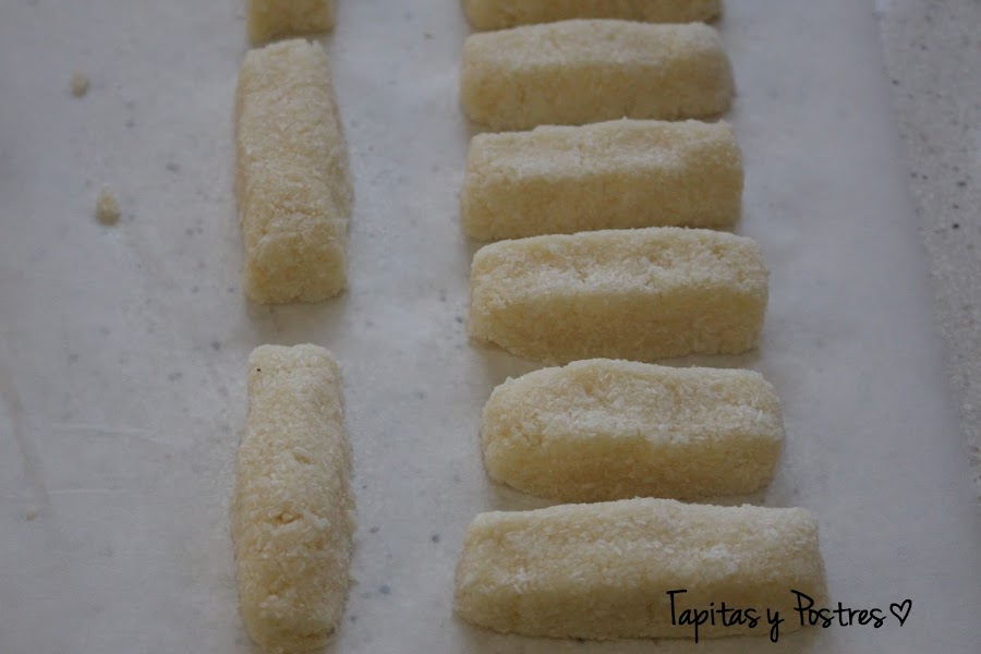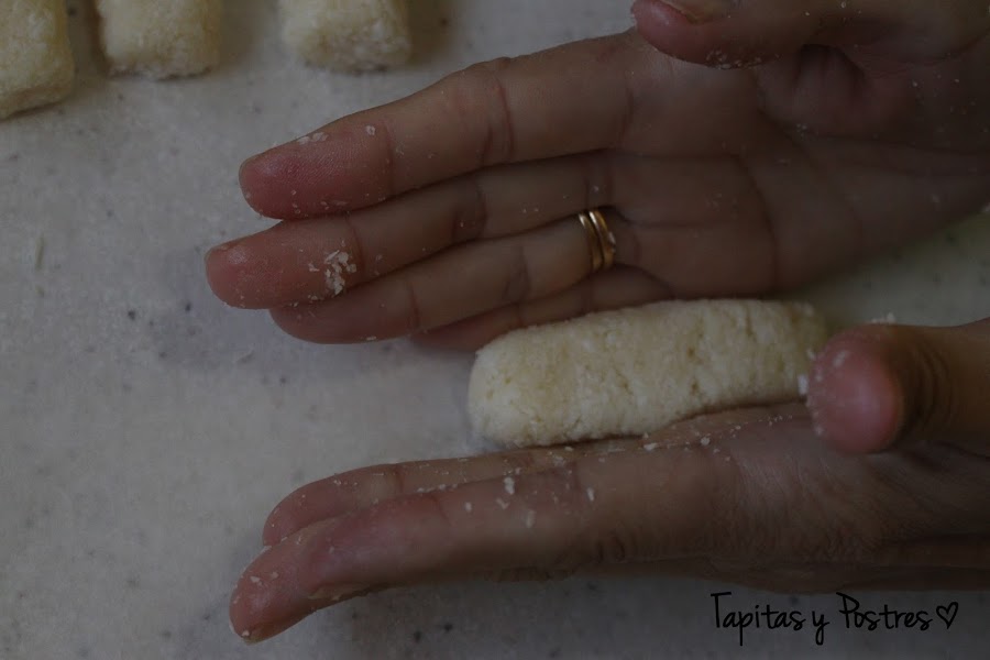 Yo las he preparado en forma de barritas, podía haberlas hecho redondas pero me dio por ahí.