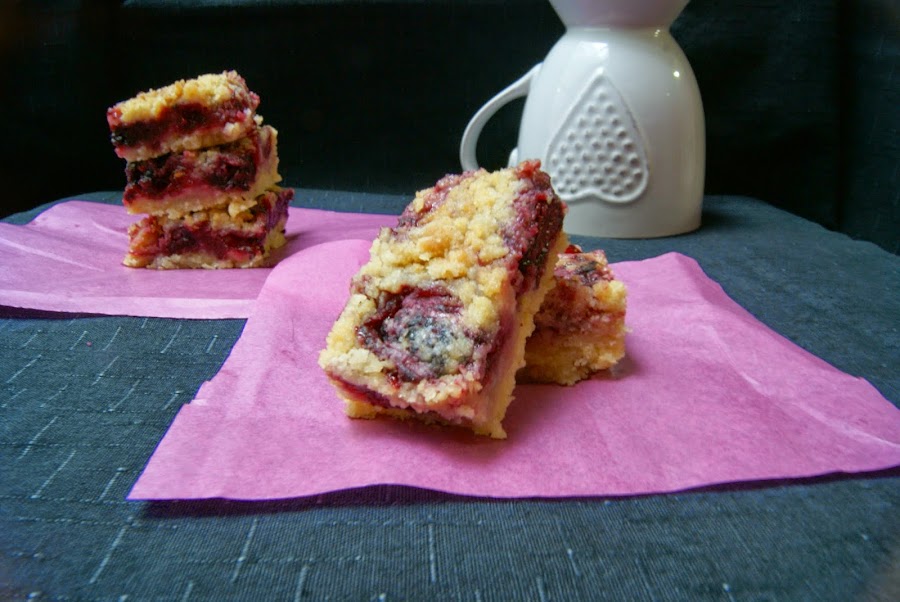 ¡Cuánto tiempo llevaba yo queriendo hacer esta receta! Se juntan muchos factores para que estén buenas, buenas: un buen crumble casero, frutos rojos (en este caso moras, pero imaginad cómo estarán con frambuesas o arándanos!!!). Además tienes la ocasión de cortarlas del tamaño que más te convenza. A mí particularmente, no me gustan muy grandes, prefiero repetir... Pero claro, como todo, depende del gusto de cada cual. Yo es que soy de tópicos: "pequeño que no tengo mucha hambre" y luego, "zas" te comes cinco, pero pequeños, eso sí, que engordan menos.